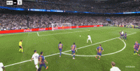 这个时候,比赛的天平已经在向皇马倾斜,但足球比赛终归和运气等因素紧密相关,所以在第34分钟,巴塞罗那通过带球深入到贝林厄姆一侧,一度制造了开场以来的最好机会: