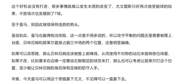 这一思路,正是我们在皇马对阵尤文赛后所提及的一个方向: